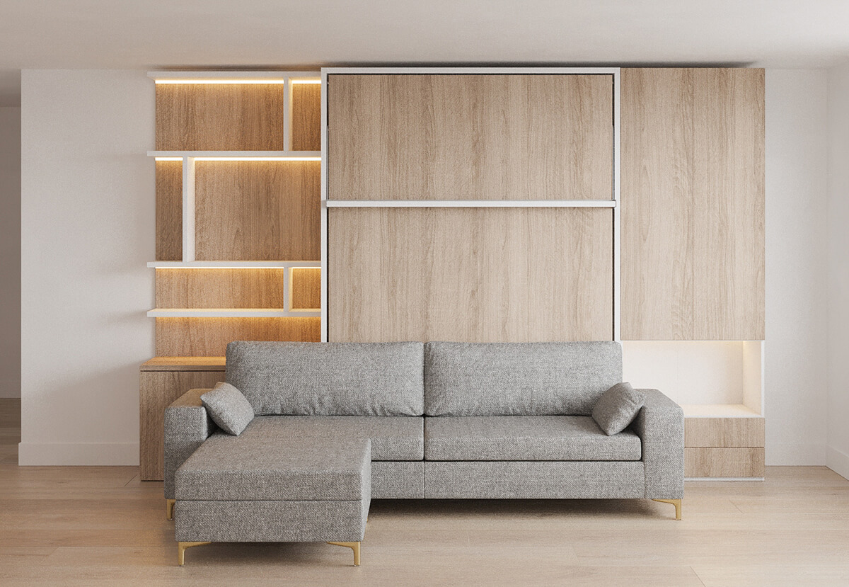 ROYAL Queen Wall Bed with Sectional Sofa, Wardrobe and Bookcase Set