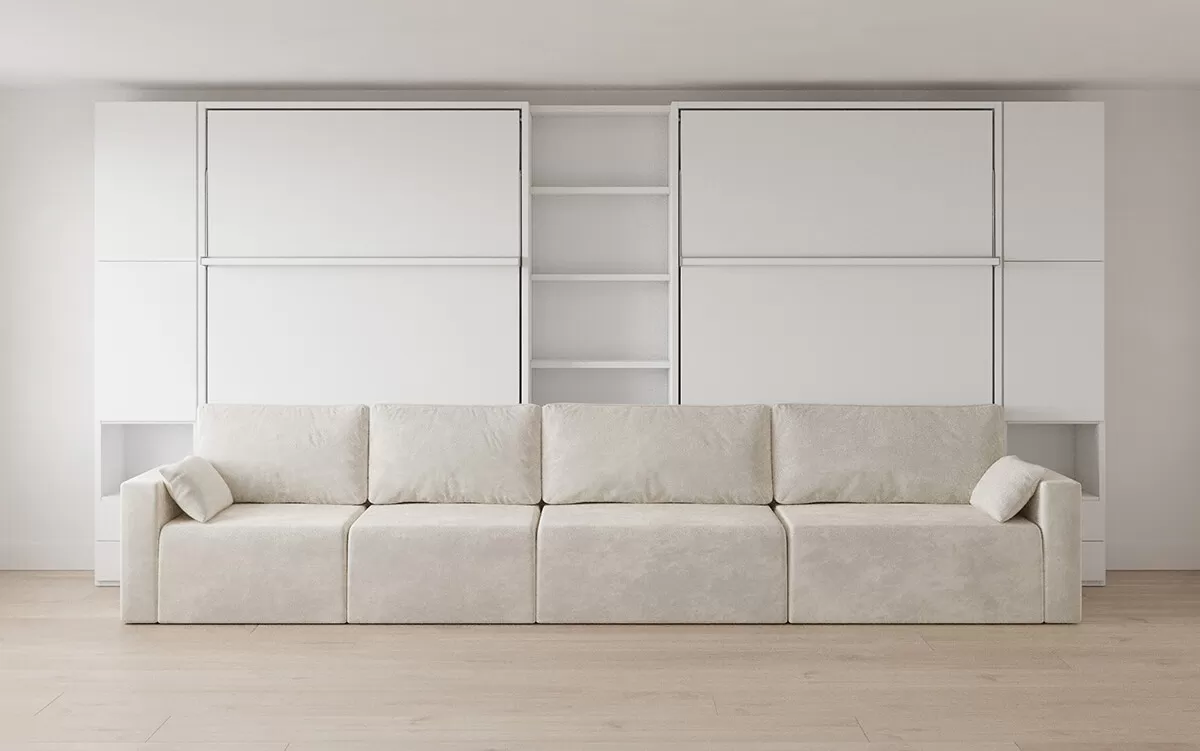 ROYAL Queen Wall Bed with Sectional Sofa, Wardrobe and Bookcase Set