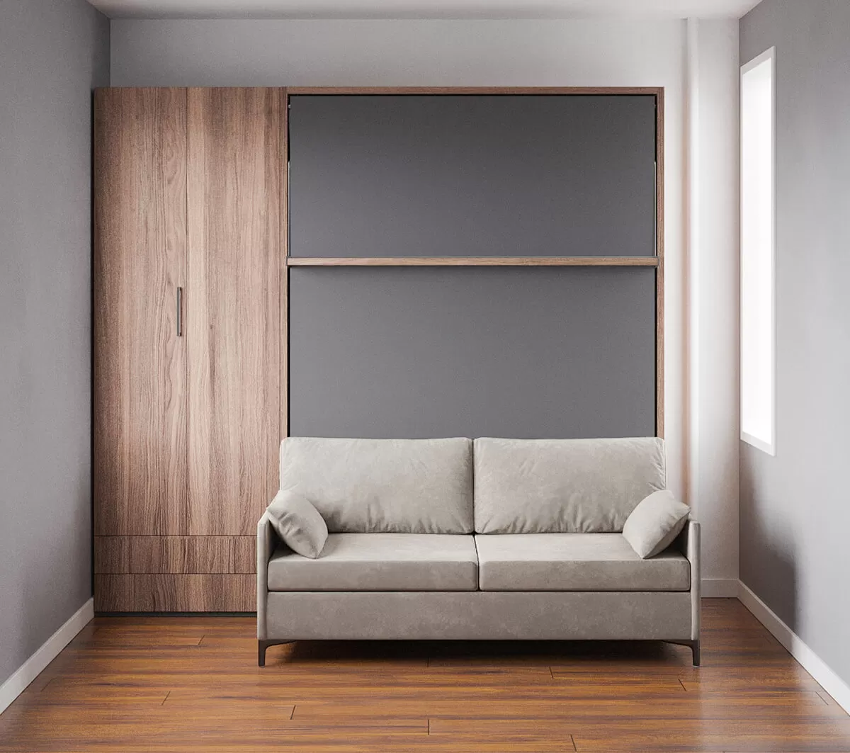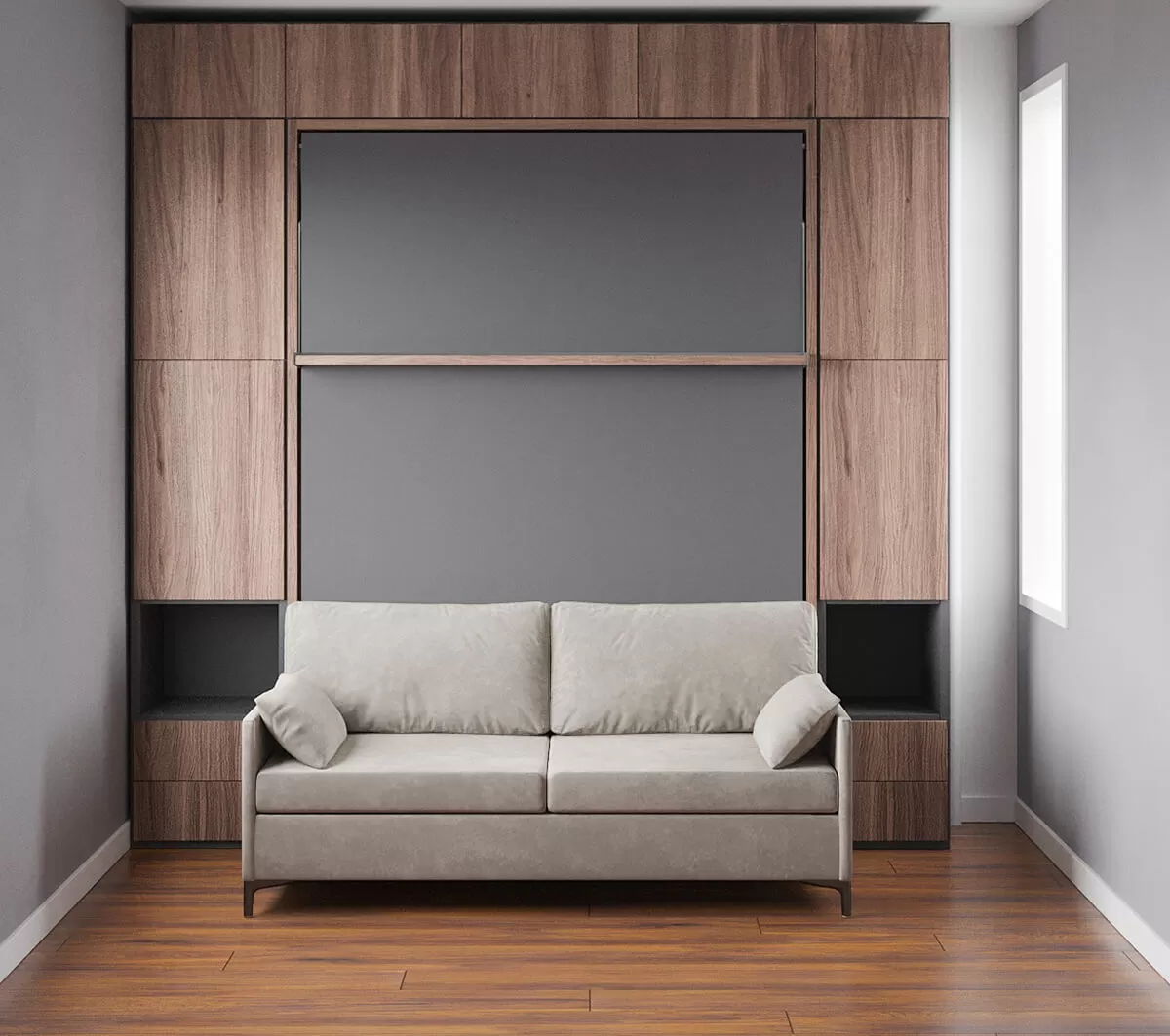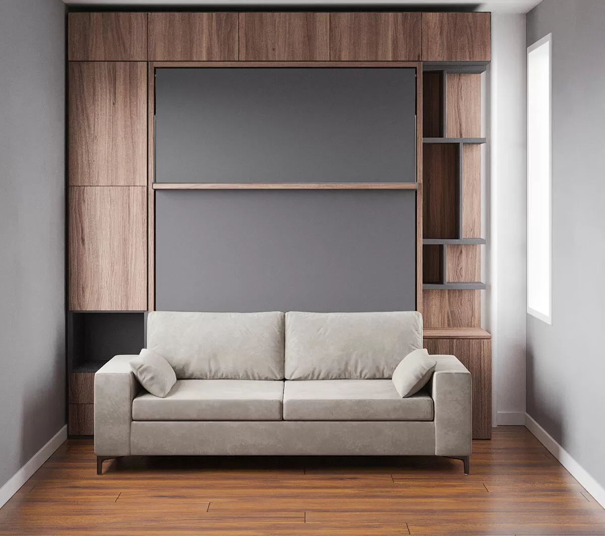 ROYAL Queen Wall Bed with Sectional Sofa, Wardrobe and Bookcase Set