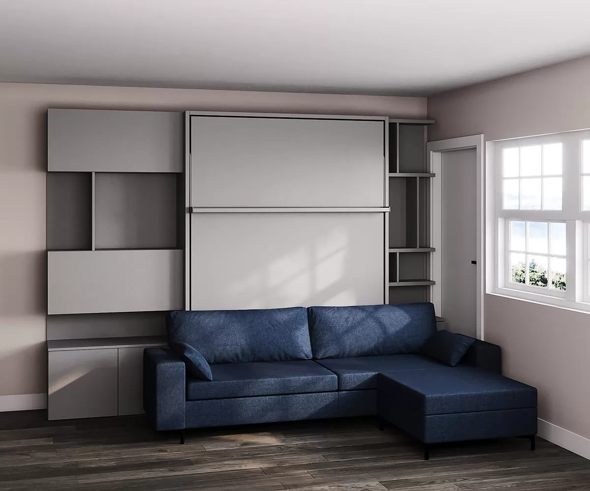 ROYAL Queen Wall Bed with Sectional Sofa, Wardrobe and Bookcases