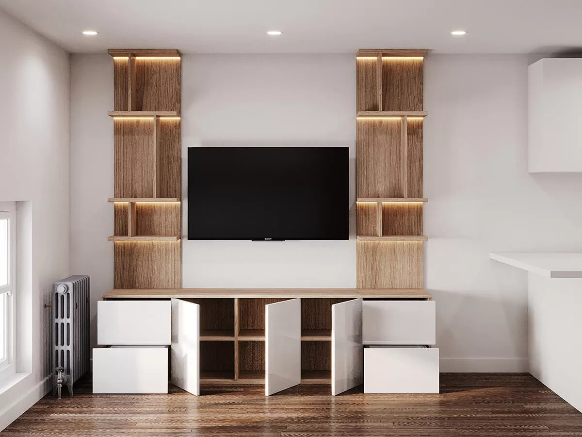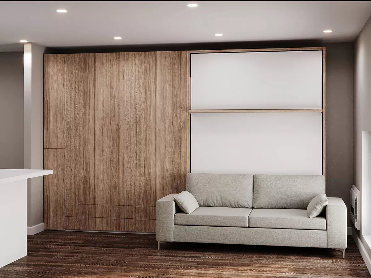 ROYAL Queen Wall Bed with Sectional Sofa, Wardrobe and Bookcases