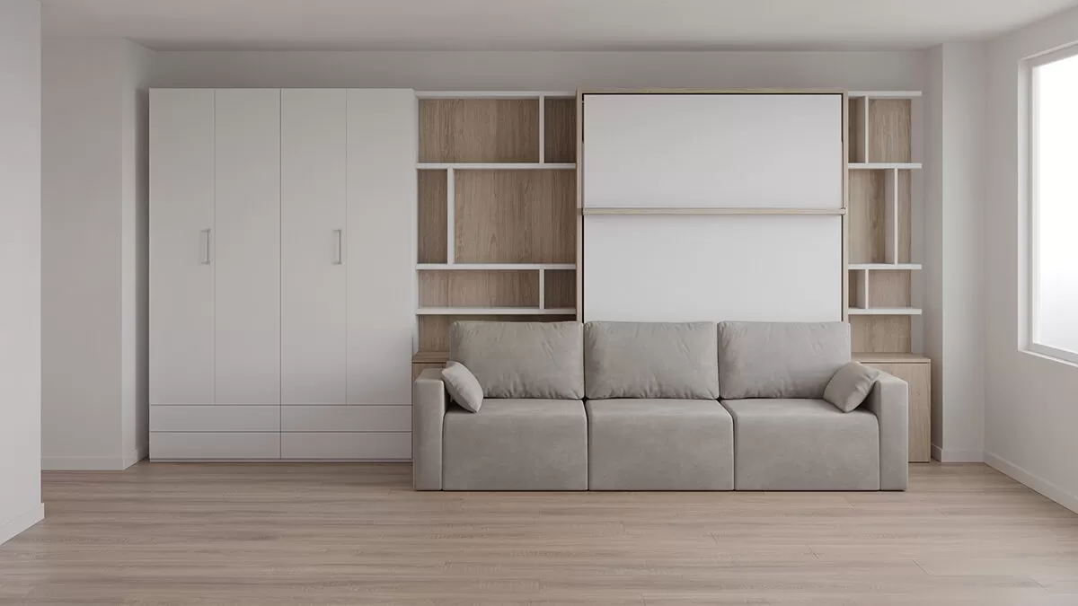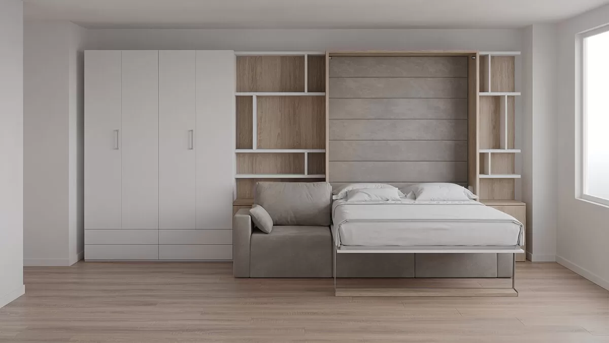 ROYAL Queen Wall Bed with Sectional Sofa, Wardrobes and Bookcase