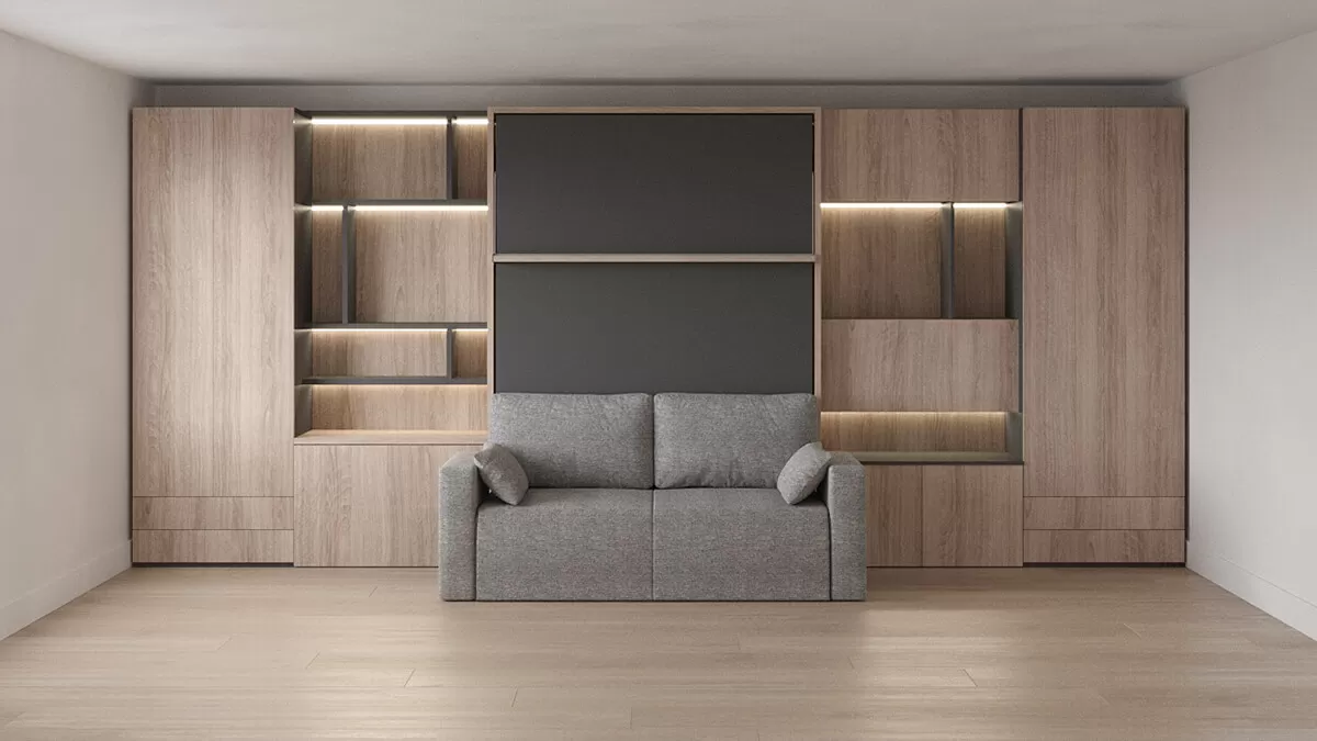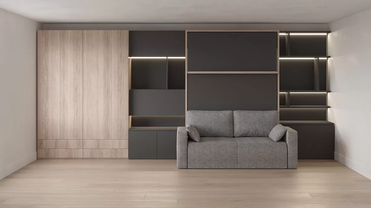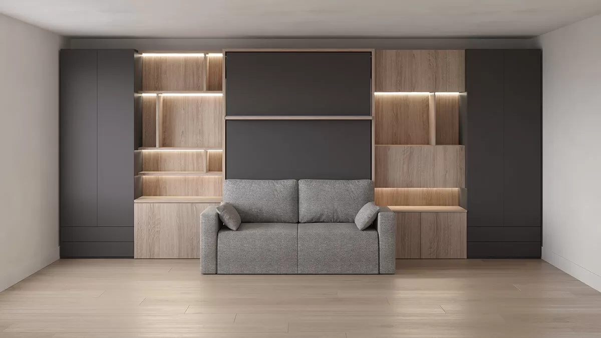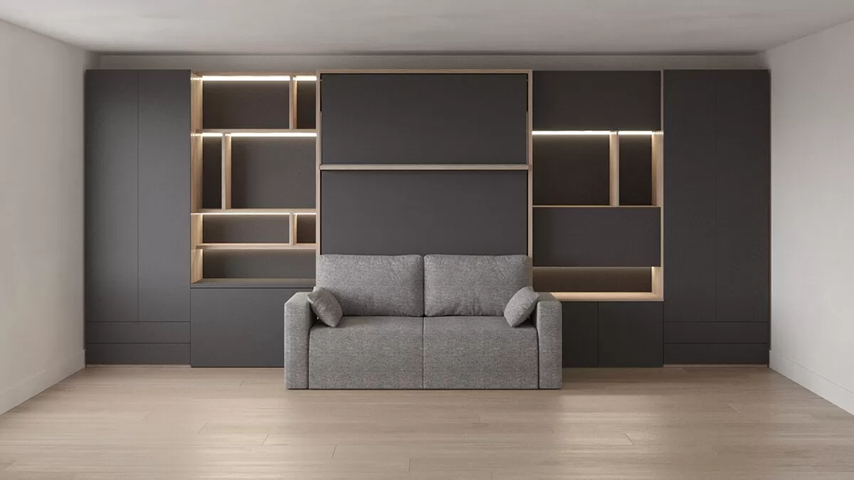 ROYAL Queen Wall Bed with Sectional Sofa, Wardrobes and Bookcase