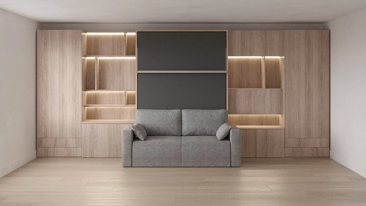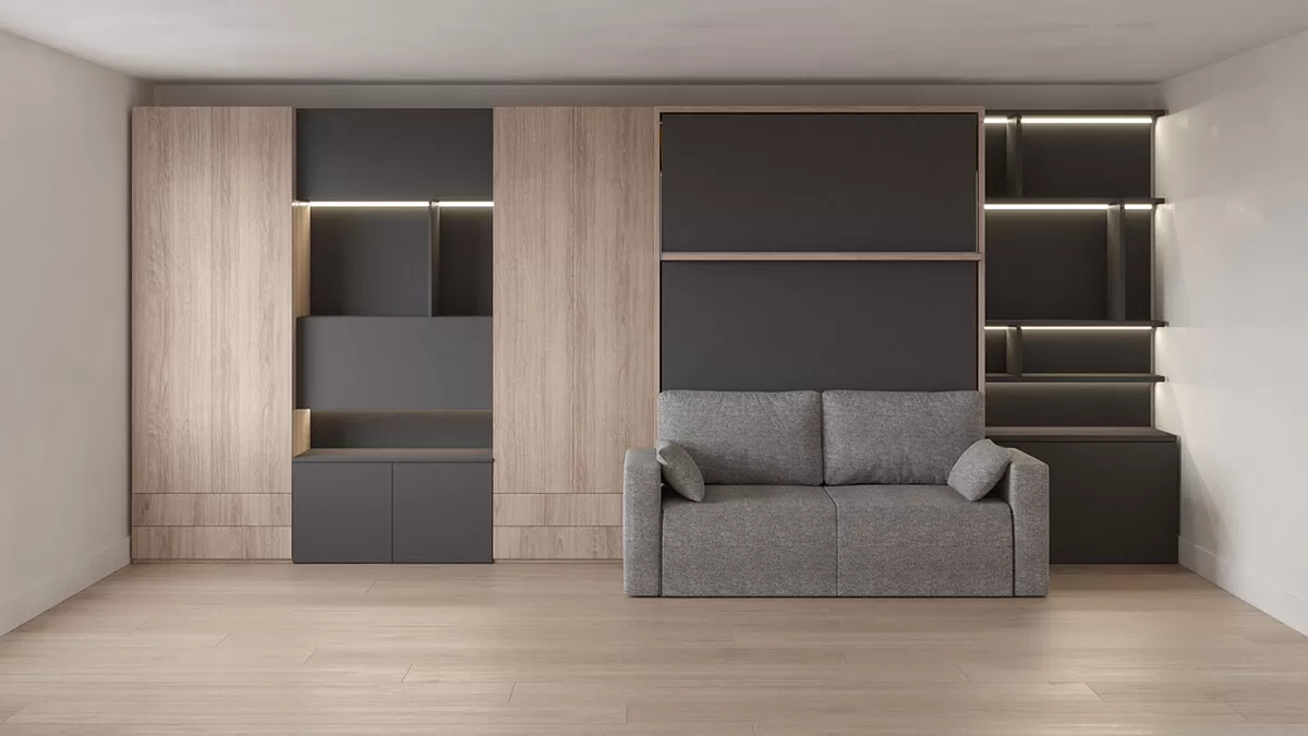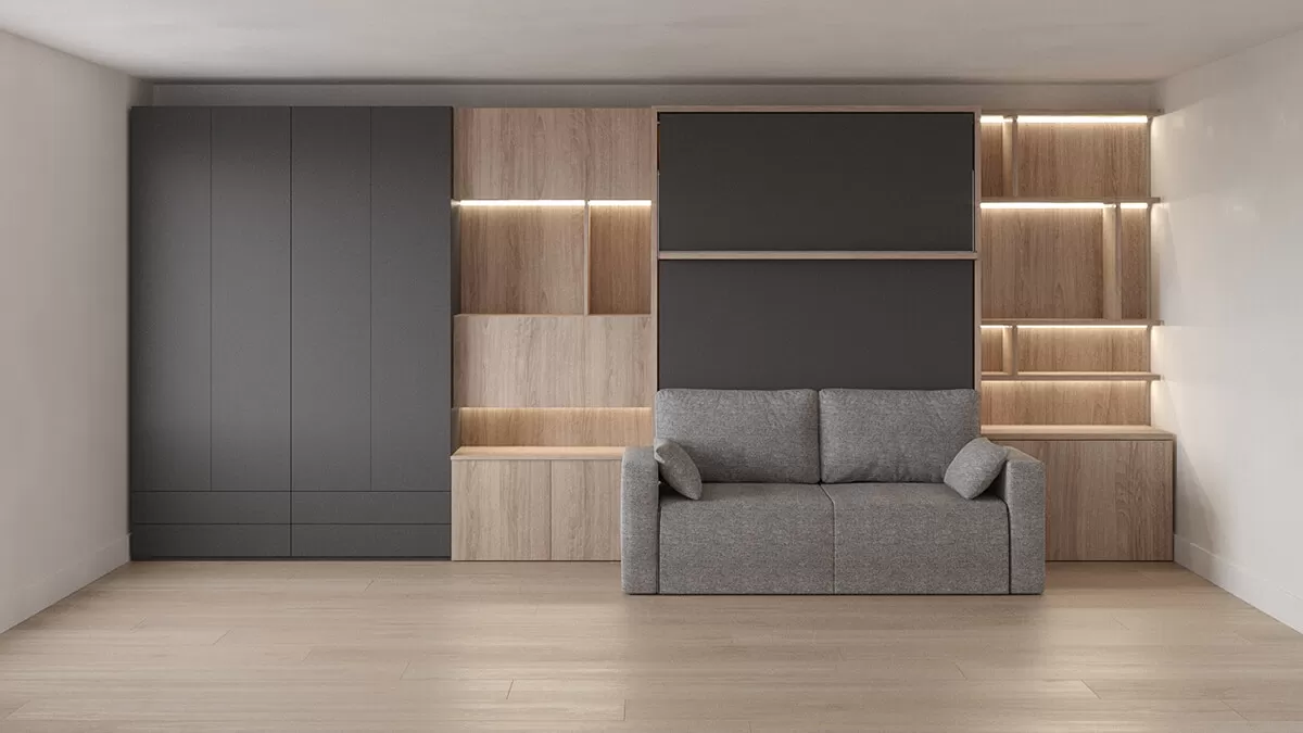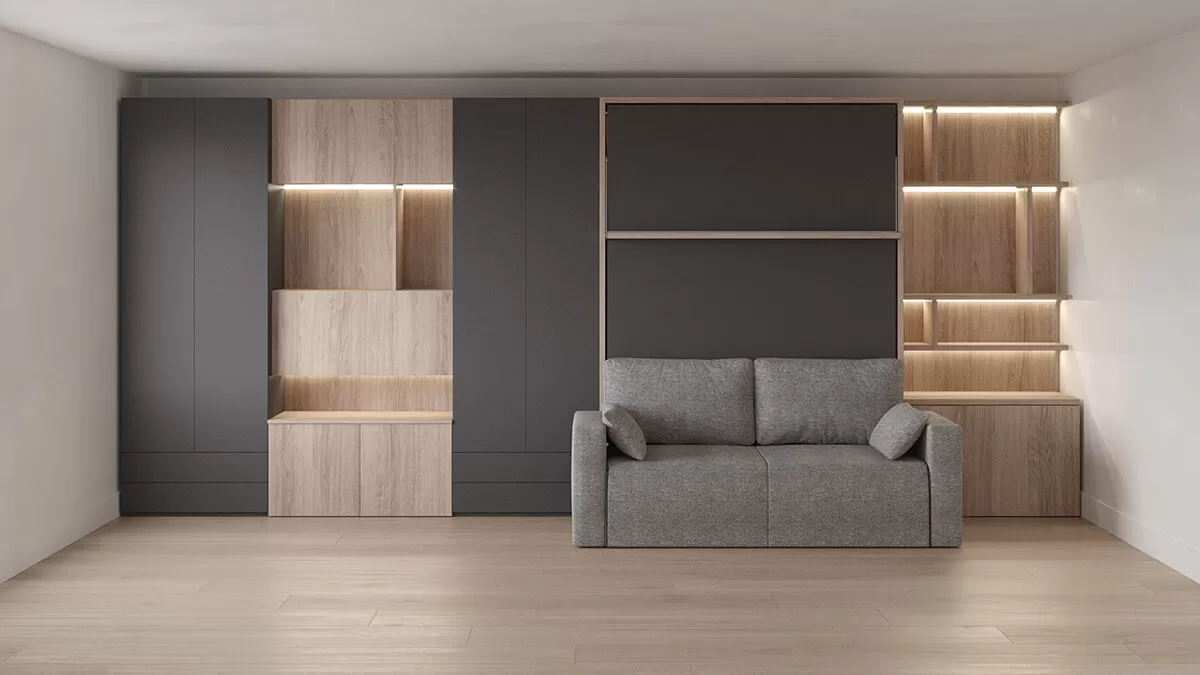 ROYAL Queen Wall Bed with Sectional Sofa, Wardrobes and Bookcase