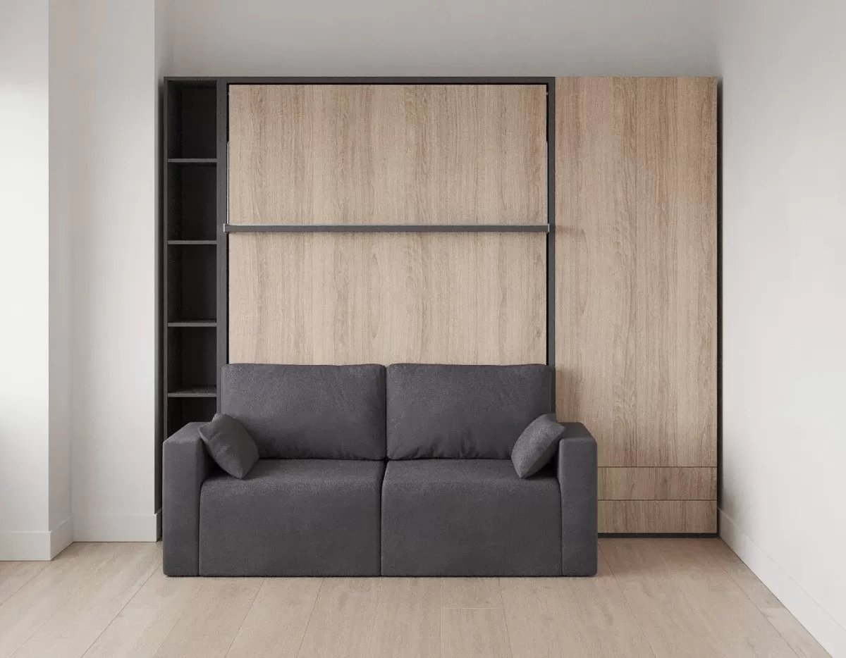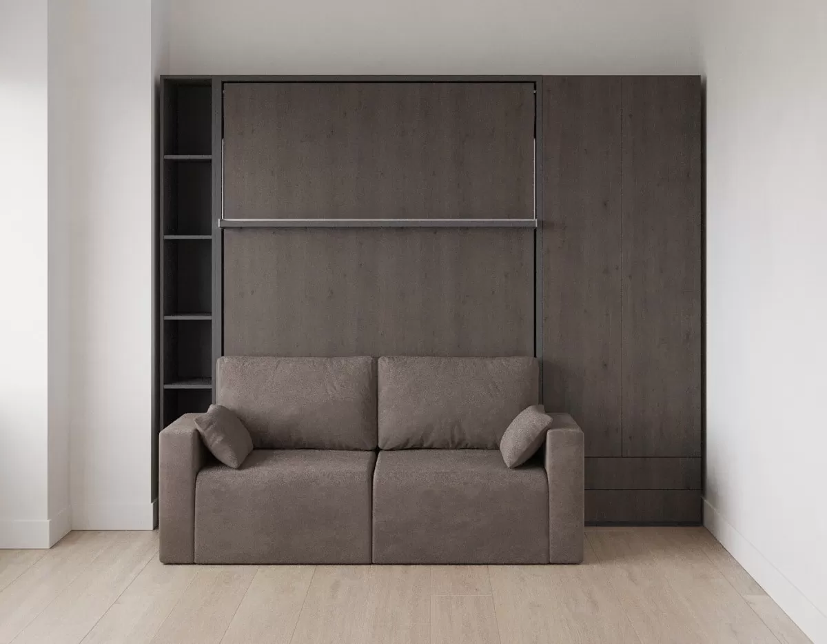 Royal Queen Wall Bed with Sectional Sofa, Wardrobes and Bookcase