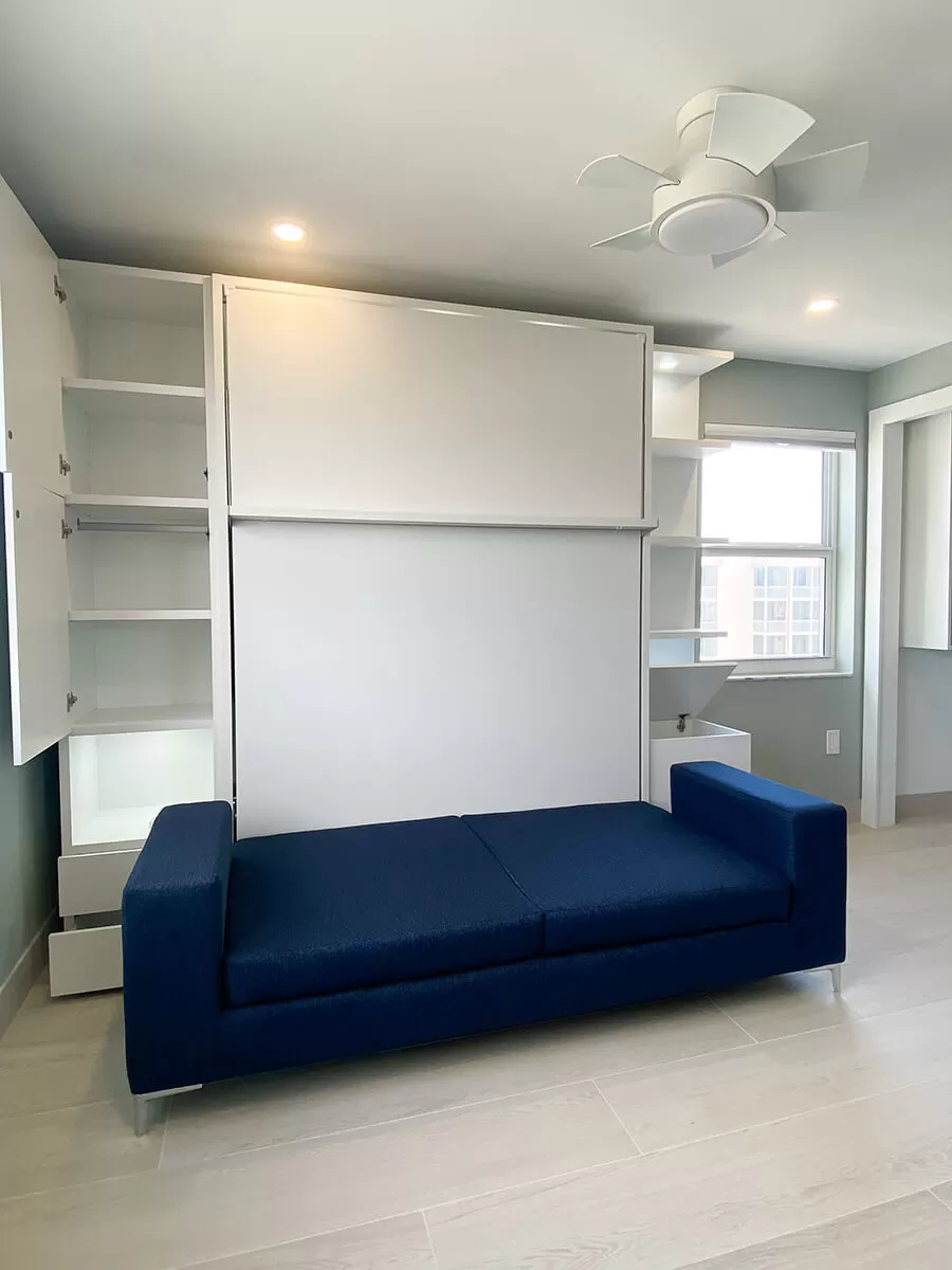 ROYAL Queen Wall Bed with Sectional Sofa, Wardrobes and Bookcases