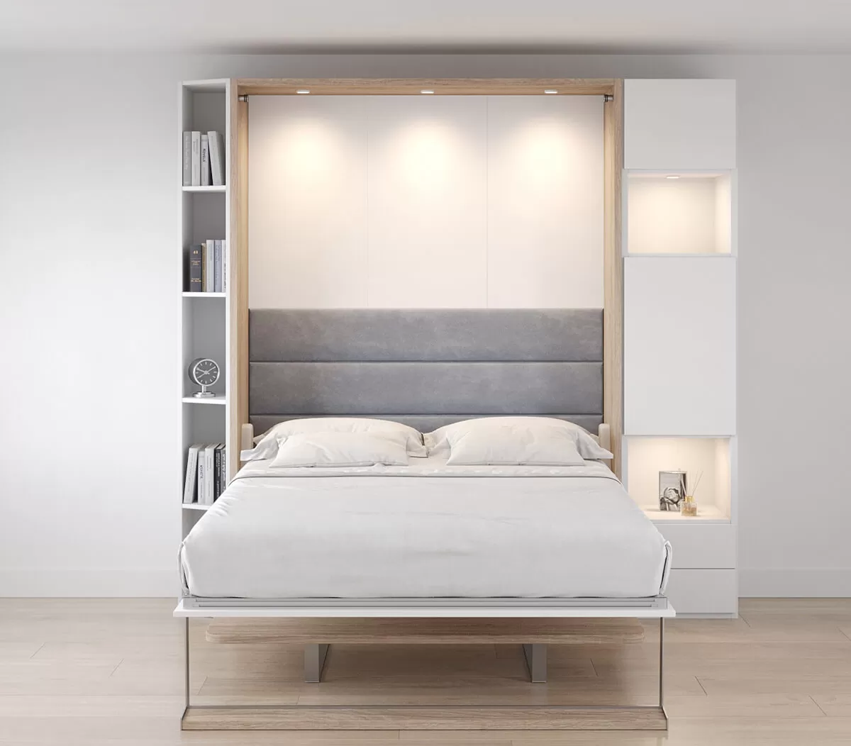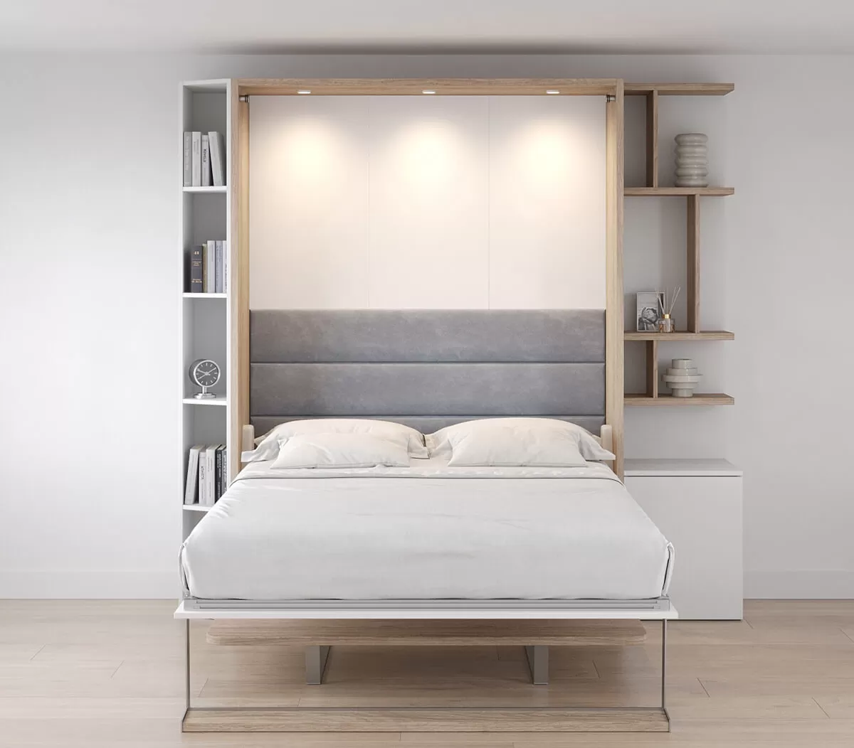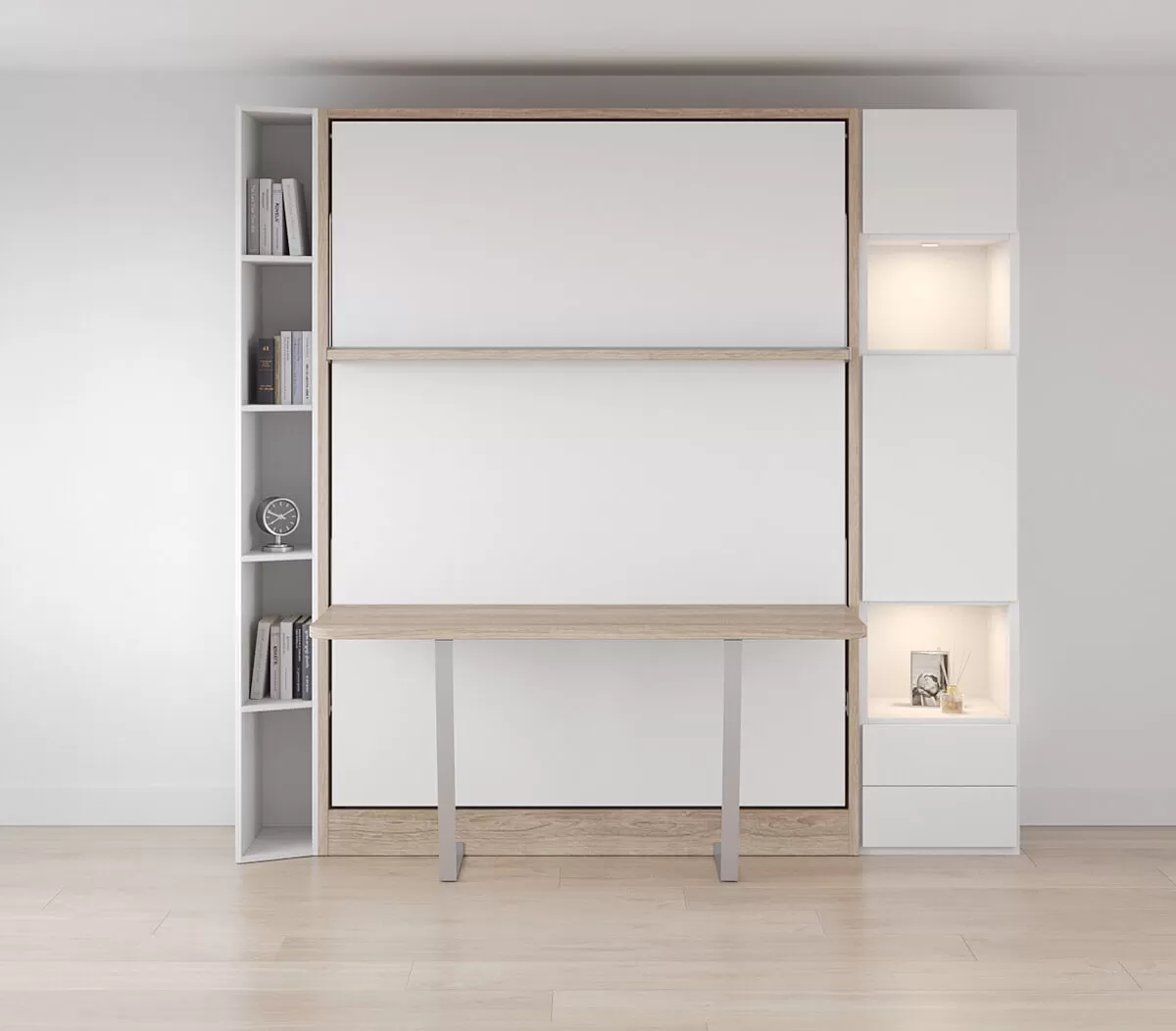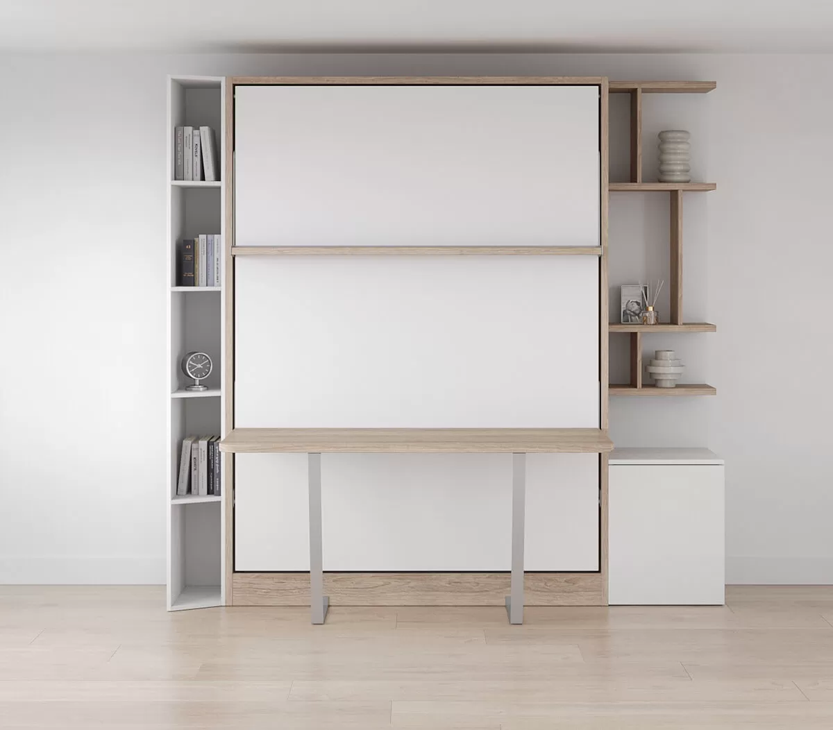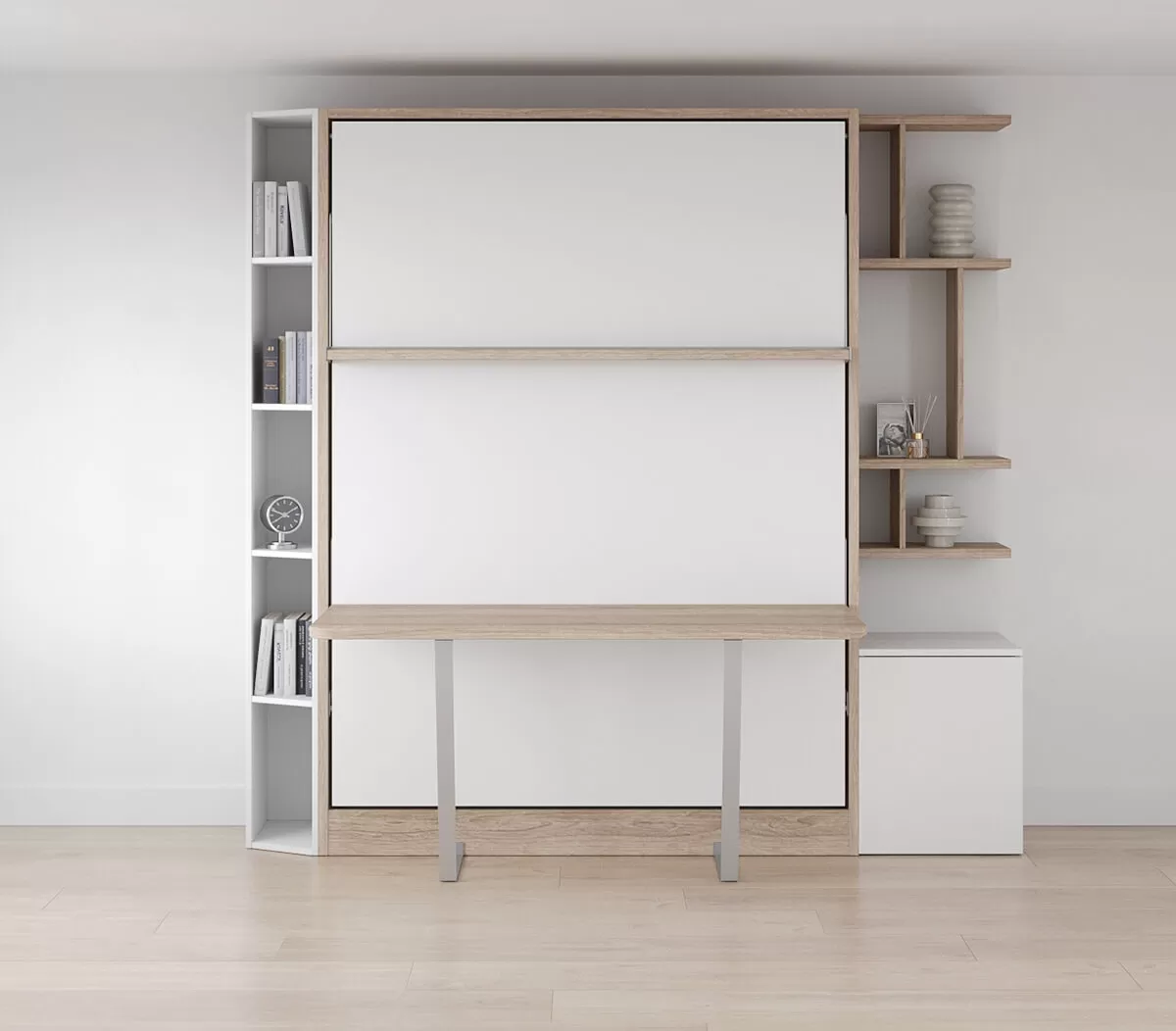ROYAL Queen Wall Bed with Self Leveling Desk and Bookcase Set