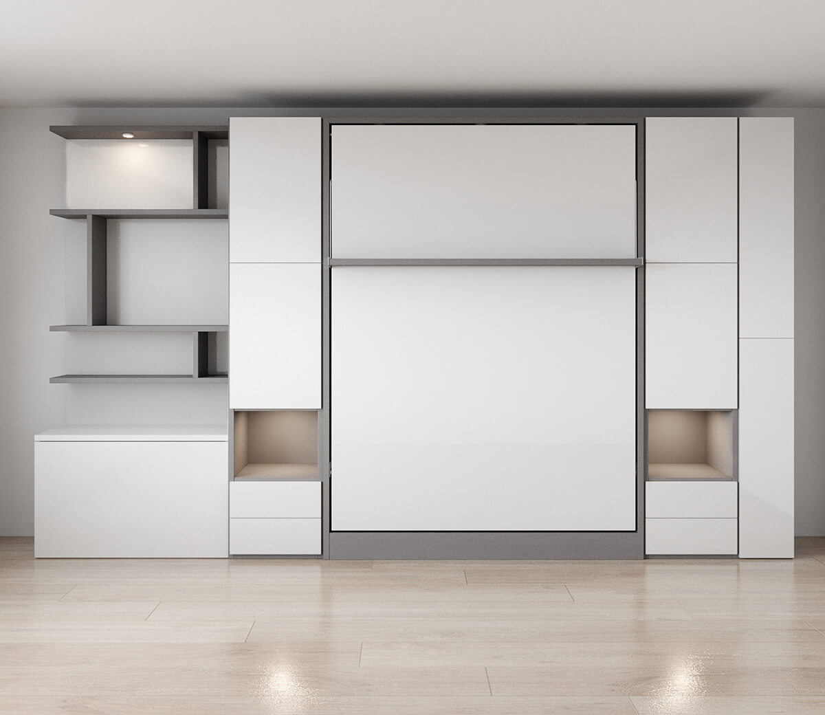 ROYAL Queen Wall Bed with Wardrobe and Bookcase Set