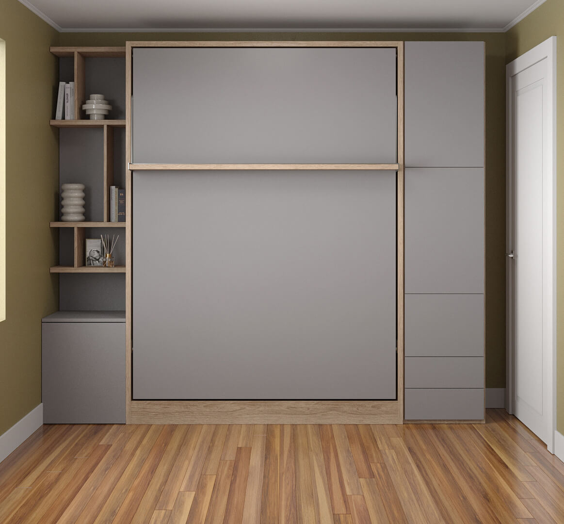 ROYAL Queen Wall Bed with Wardrobe and Bookcase Set