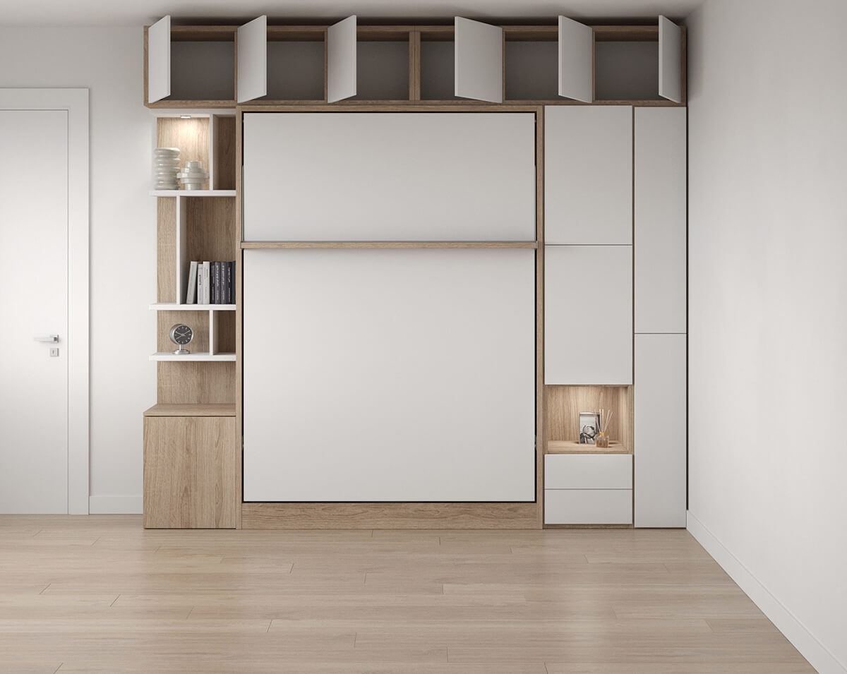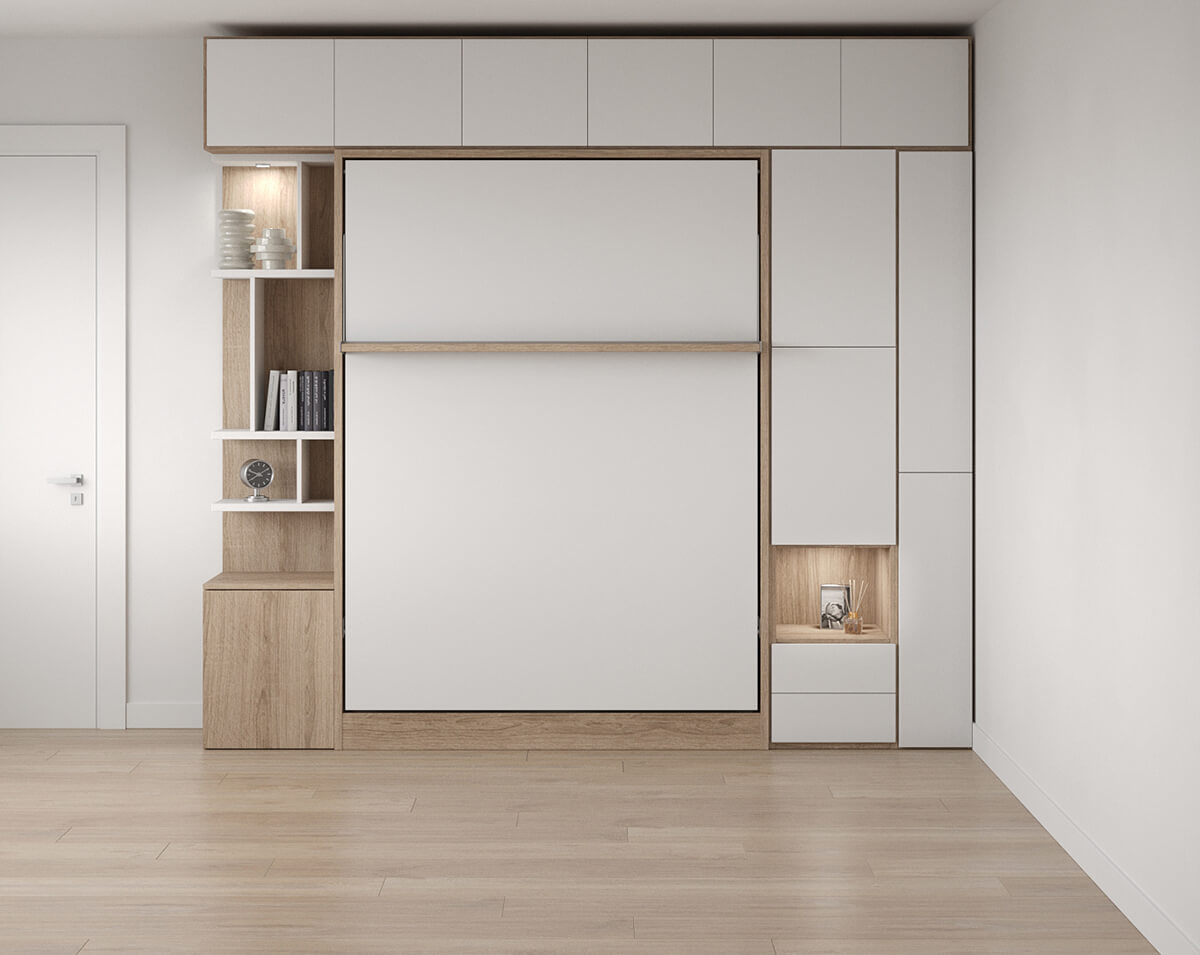 ROYAL Queen Wall Bed with Wardrobe and Bookcase Set