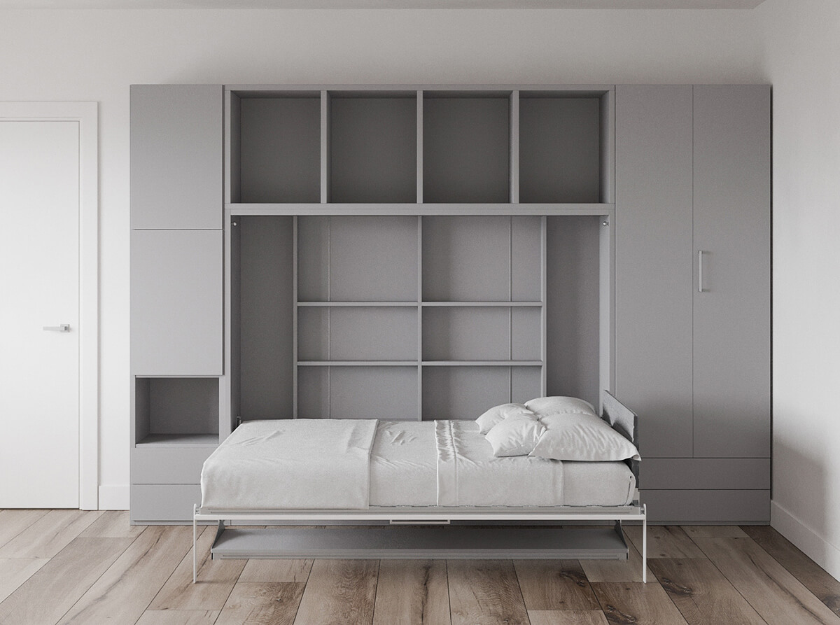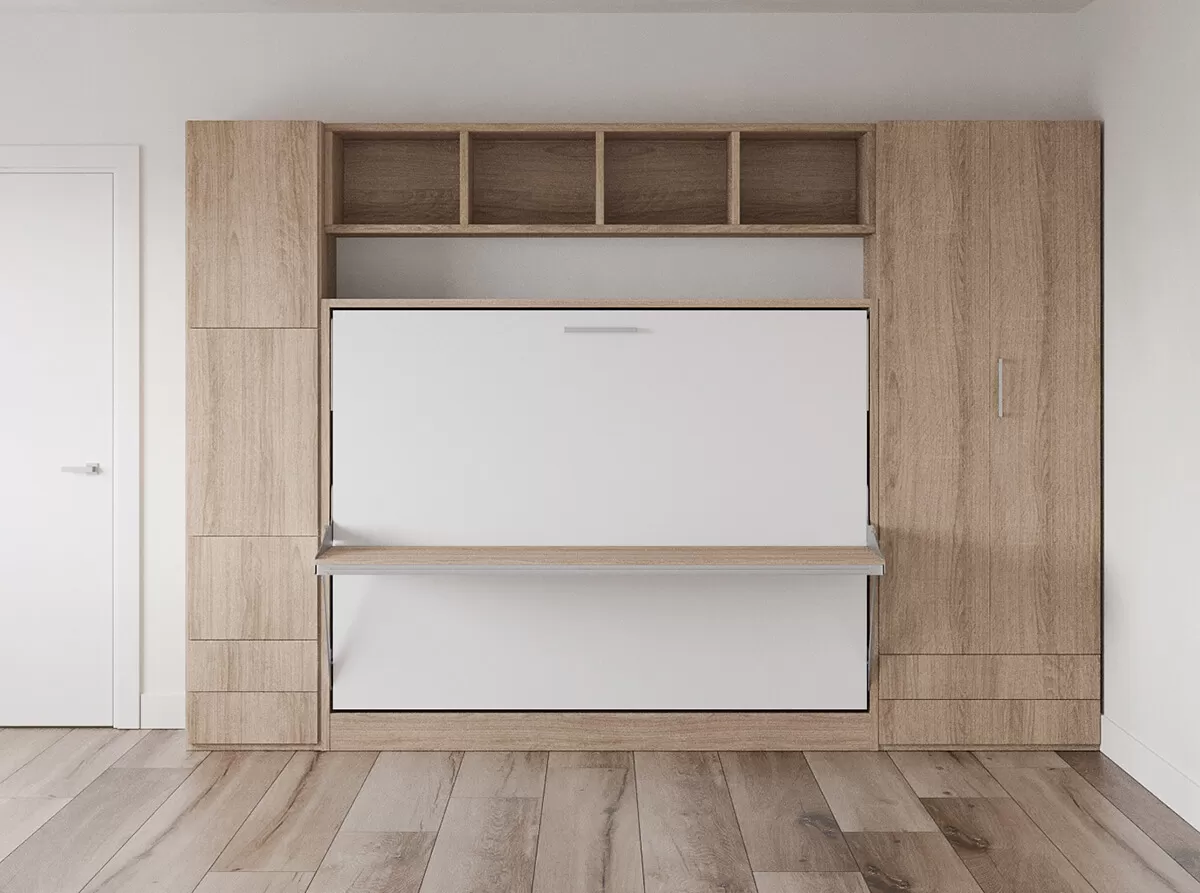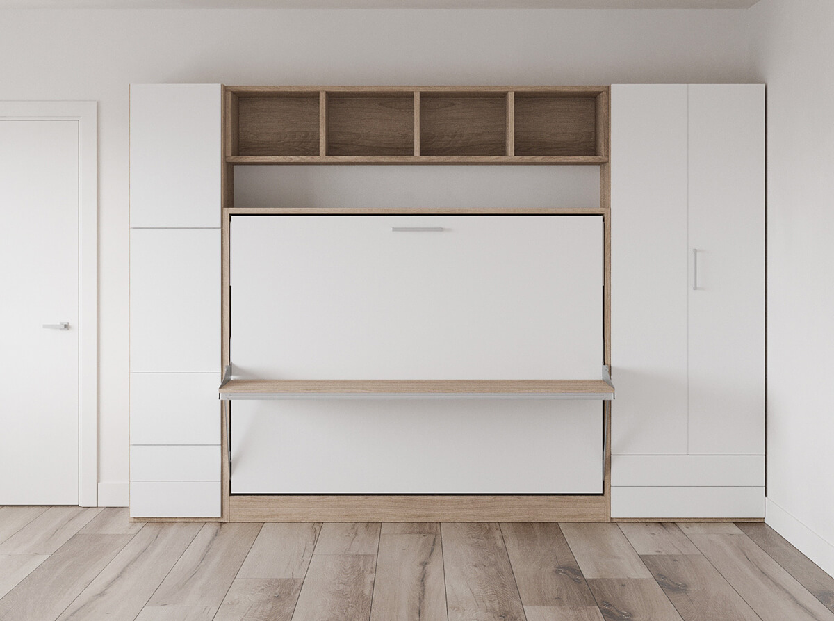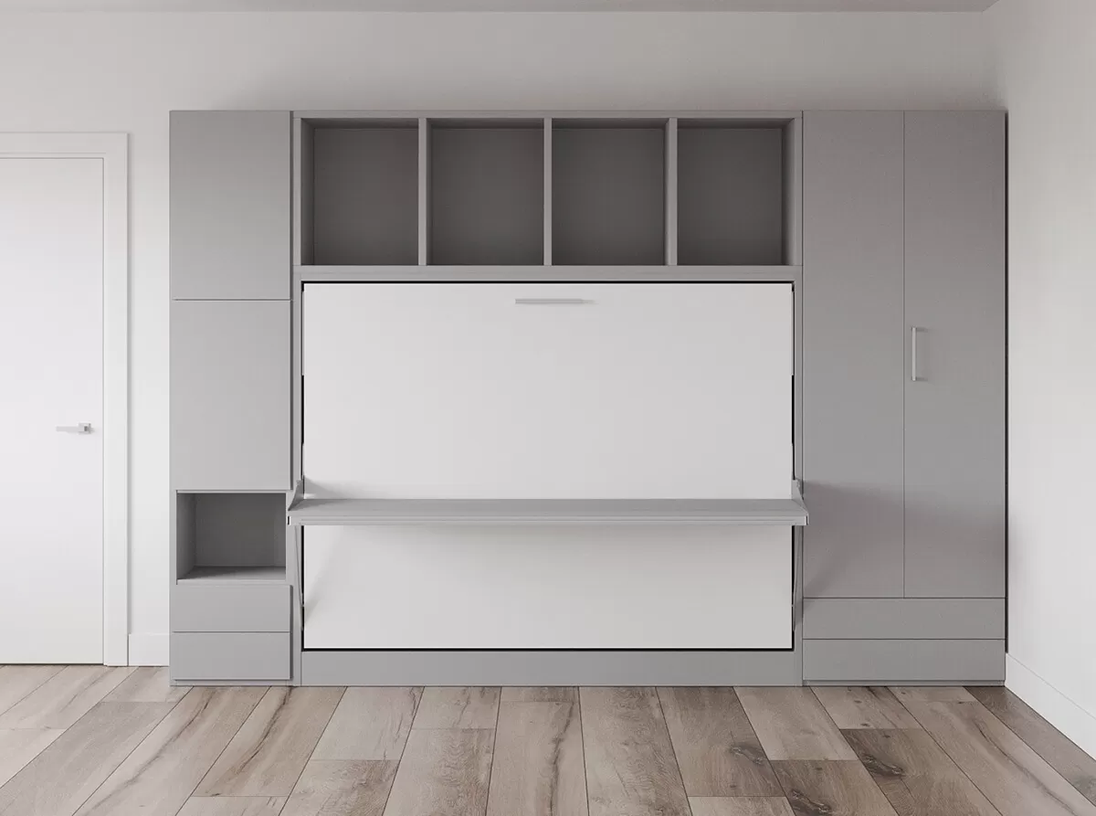 Spazio - Full Size Wall Bed with Desk and Wardrobe
