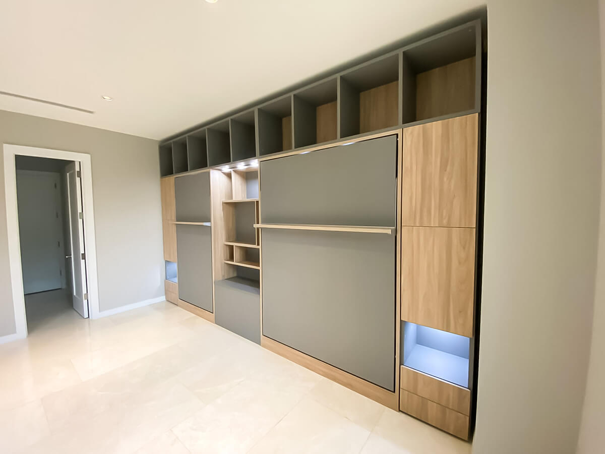 ROYAL Queen Wall Bed with Sectional Sofa and Bookcase Set