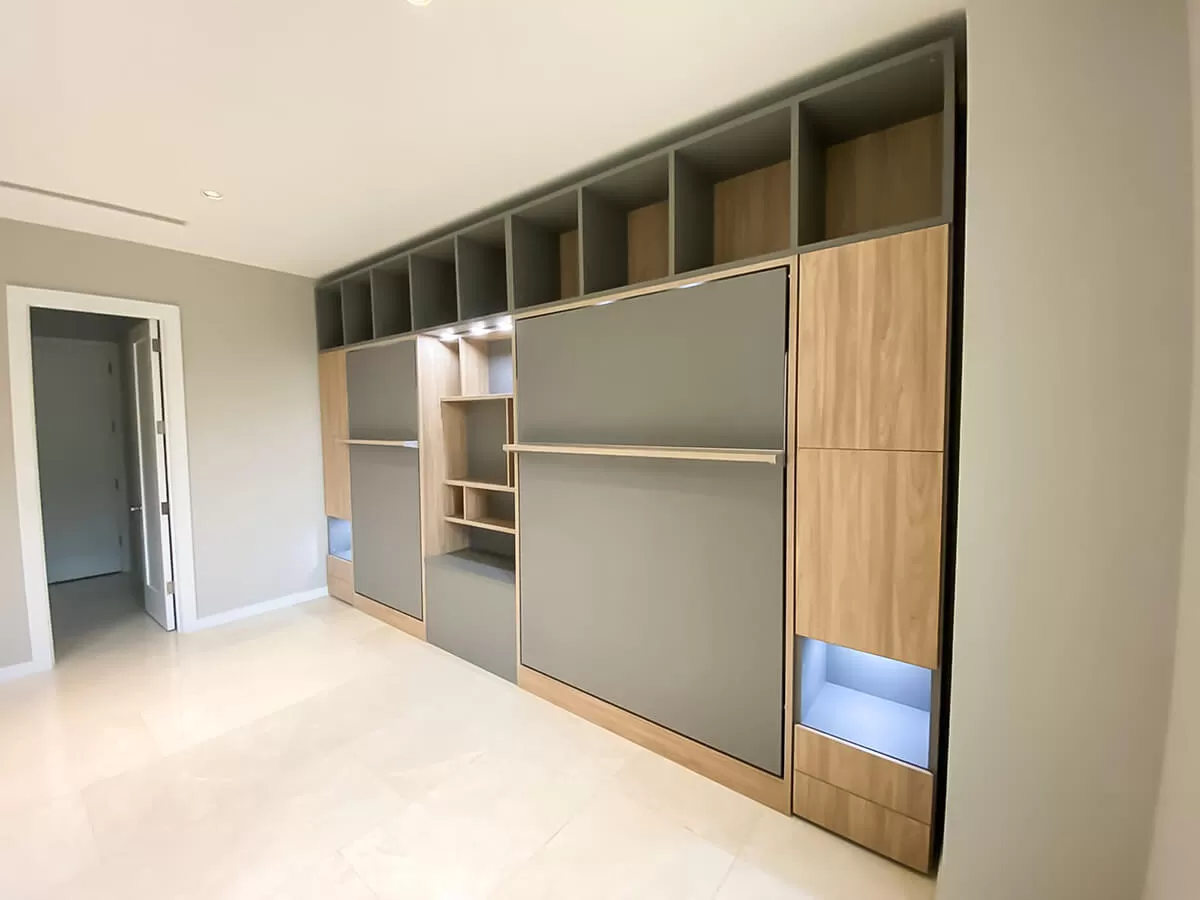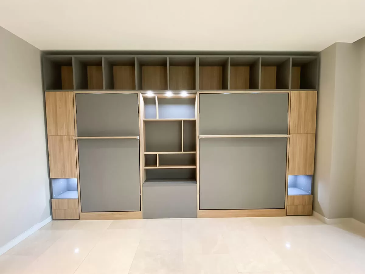 Maximize your living space with the Royal Queen Murphy Bed with Sectional Sofa and Bookcase Set, combining comfort and storage. This multifunctional design includes a queen-sized bed, a stylish sectional sofa, and integrated bookcases for added organization. Perfect for modern homes, it offers a seamless blend of functionality and elegance.