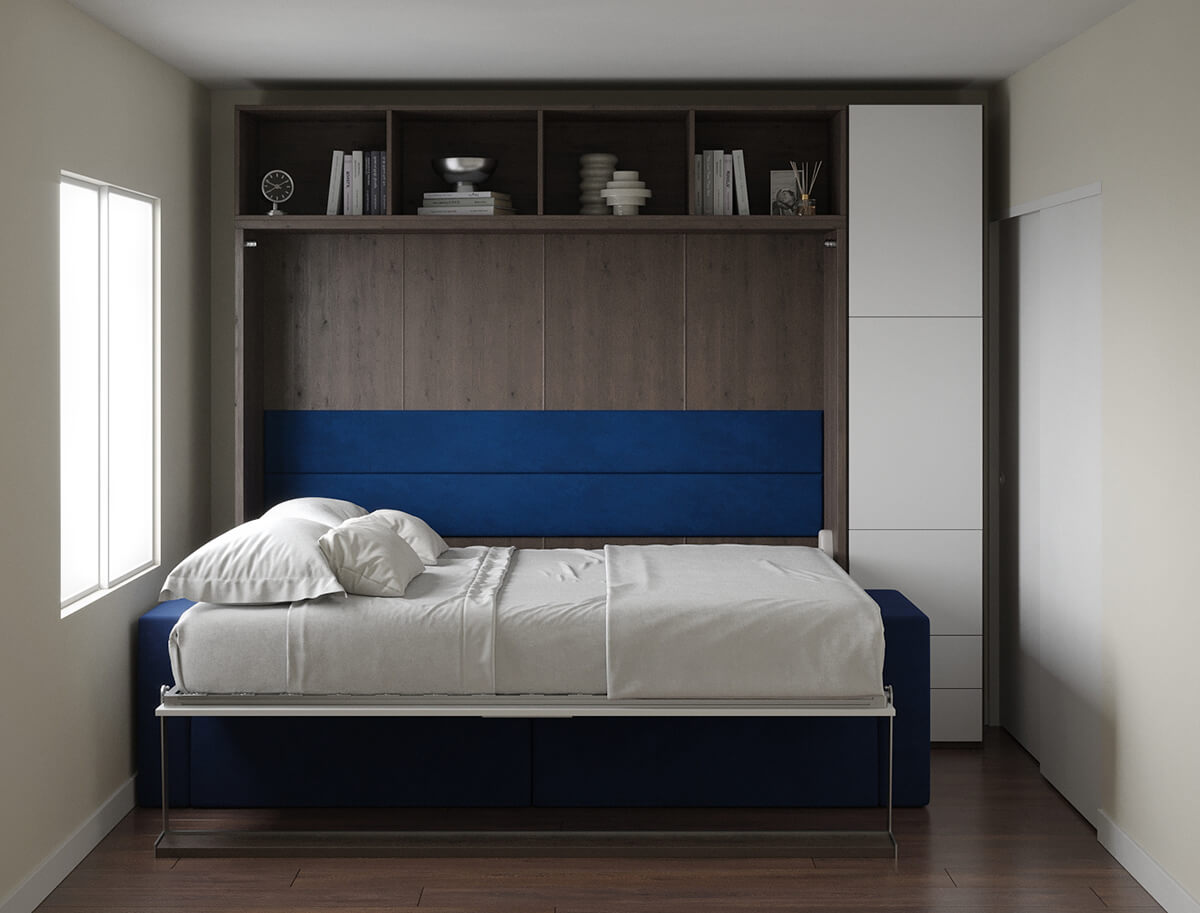 Royal Horizontal Queen Wall Bed with Sectional Sofa and Bookcase Set