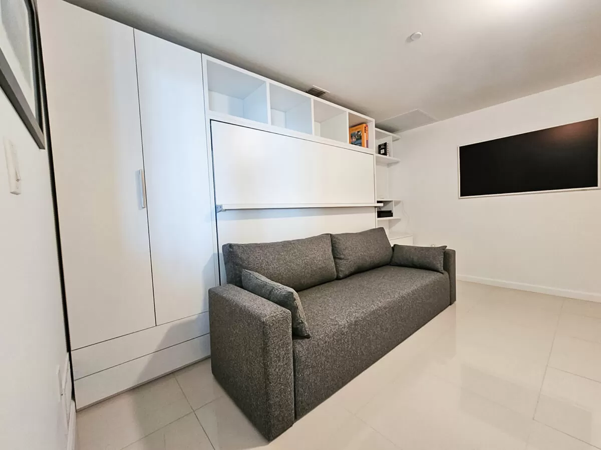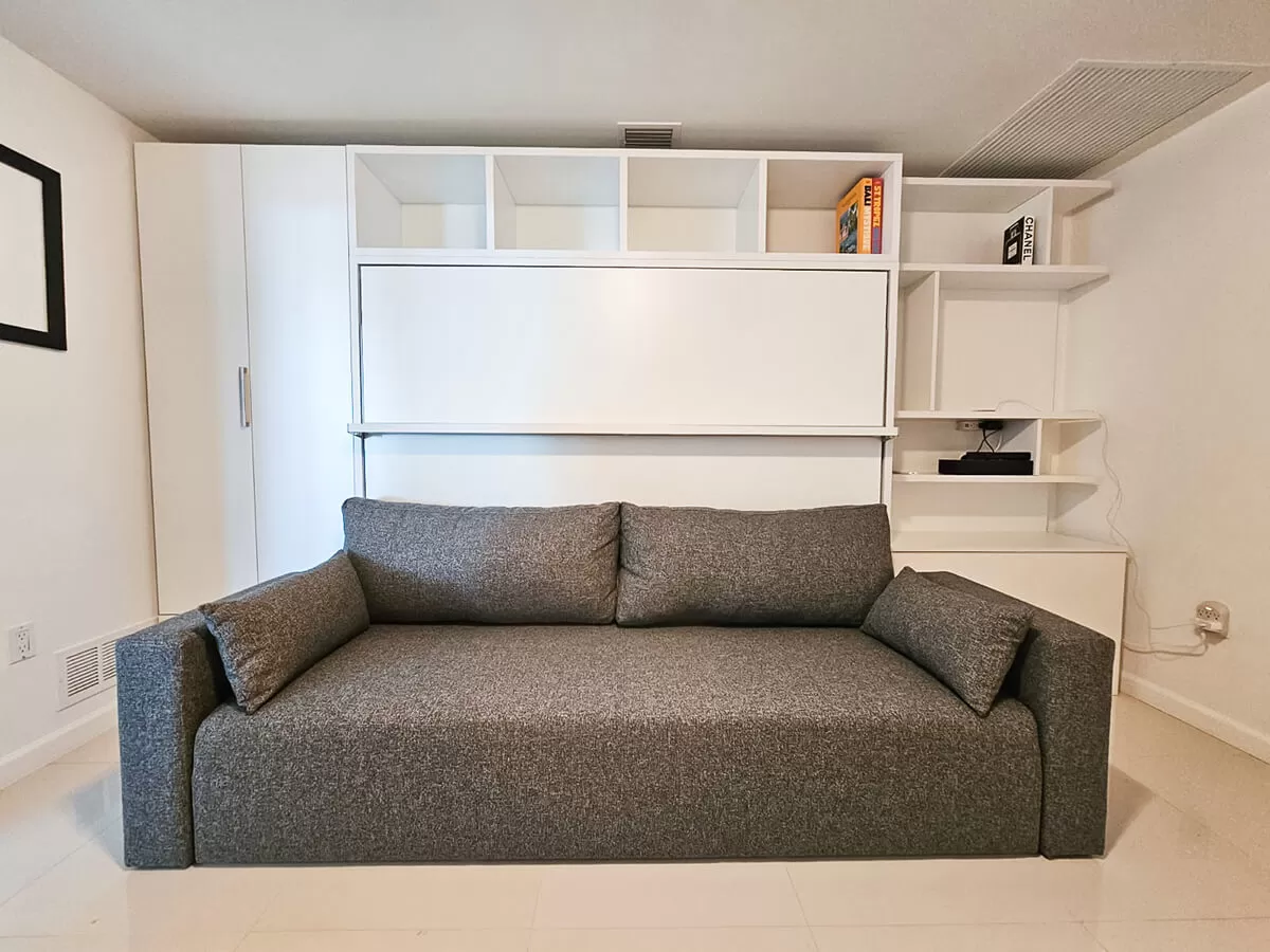 Royal Horizontal Queen Wall Bed with Sofa, Bookcase and Wardrobe