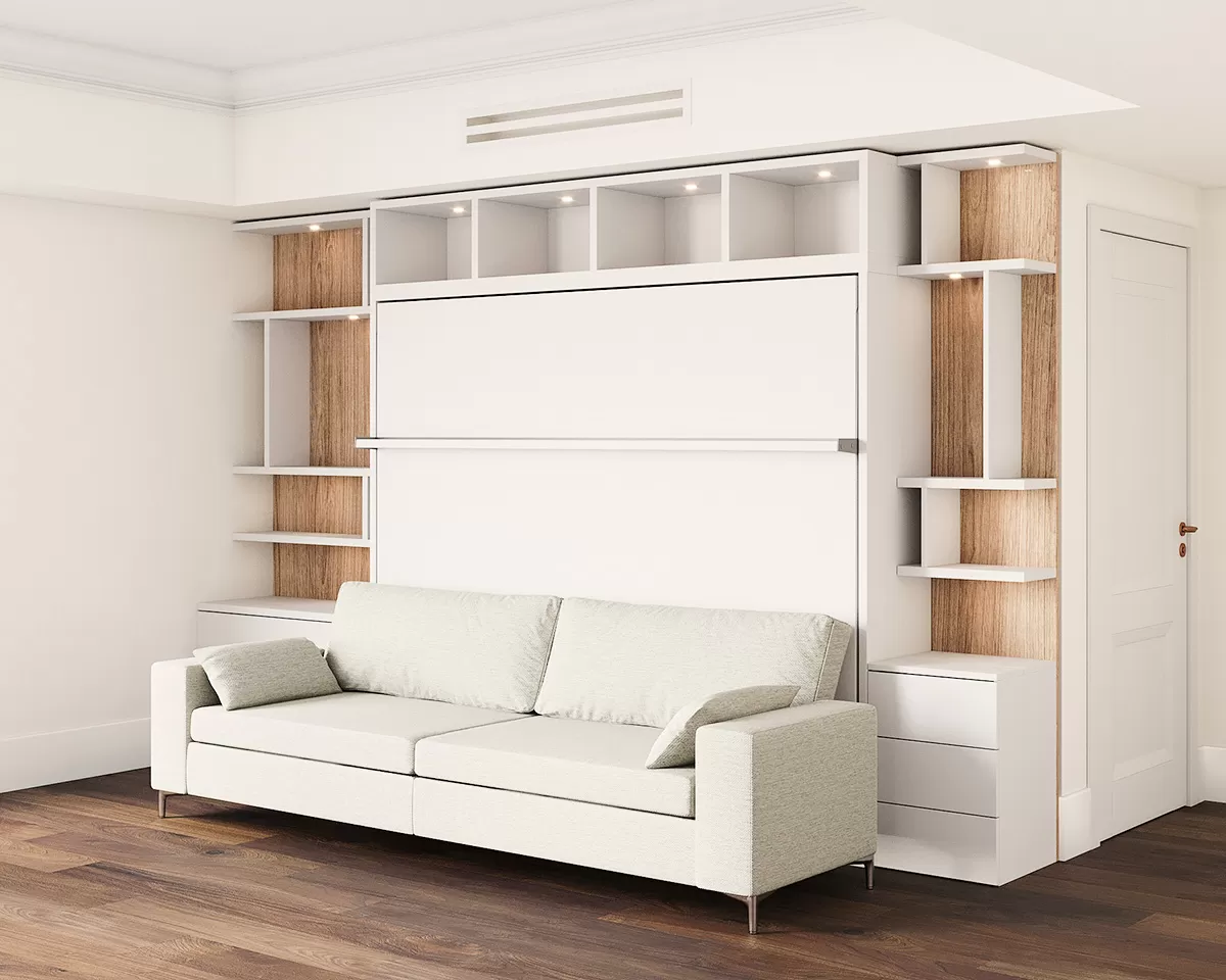 Royal Horizontal Queen Wall Bed with Wardrobe and Bookcase Set