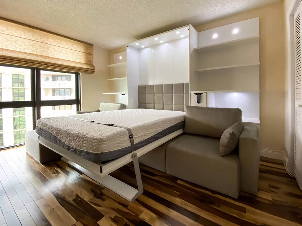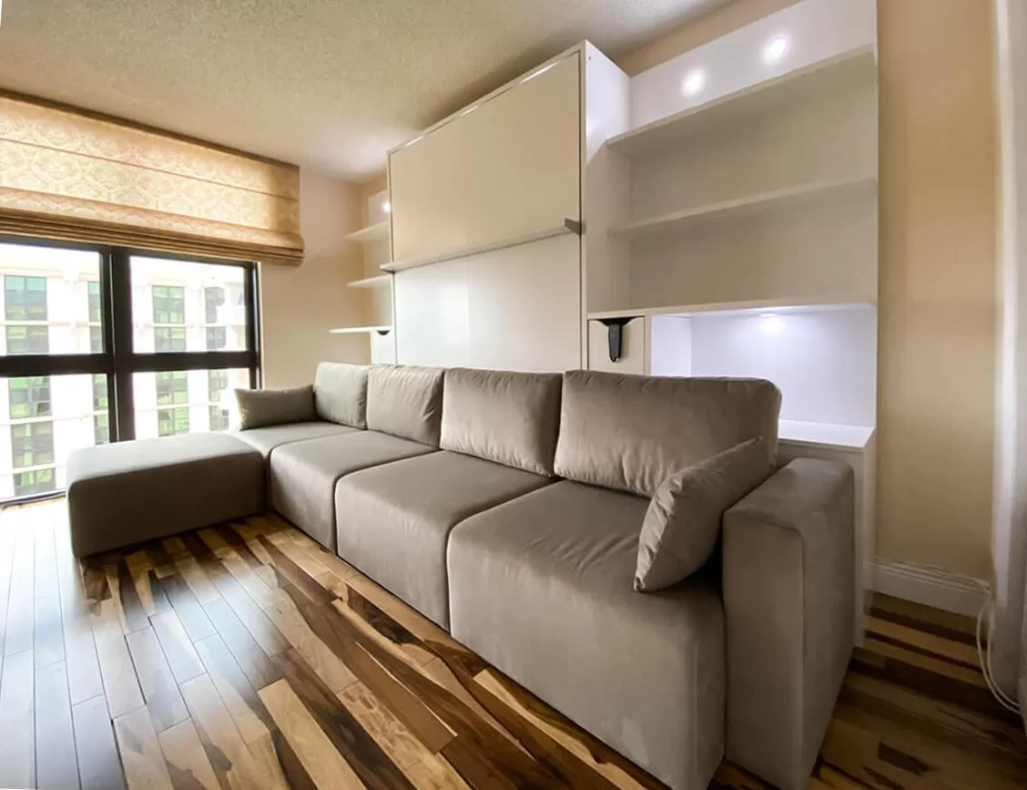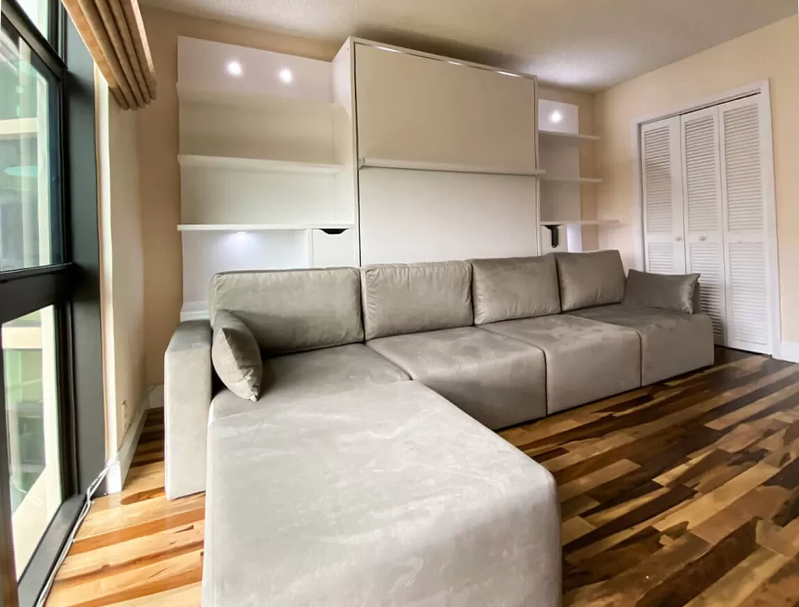 Transform your living area with the Royal Queen Murphy Bed with Sectional Sofa, offering a stylish blend of seating and sleeping solutions. This multifunctional wall bed maximizes space without compromising on comfort. Ideal for modern homes, it seamlessly integrates a queen-sized bed with a chic sectional sofa.