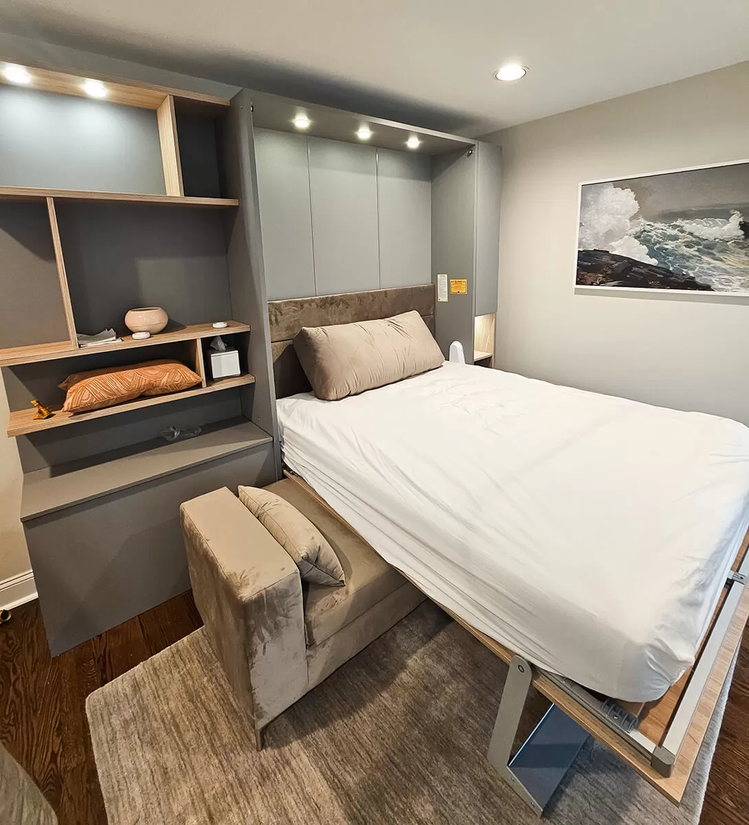 ROYAL Queen Wall Bed with Sectional Sofa and Bookcase Set