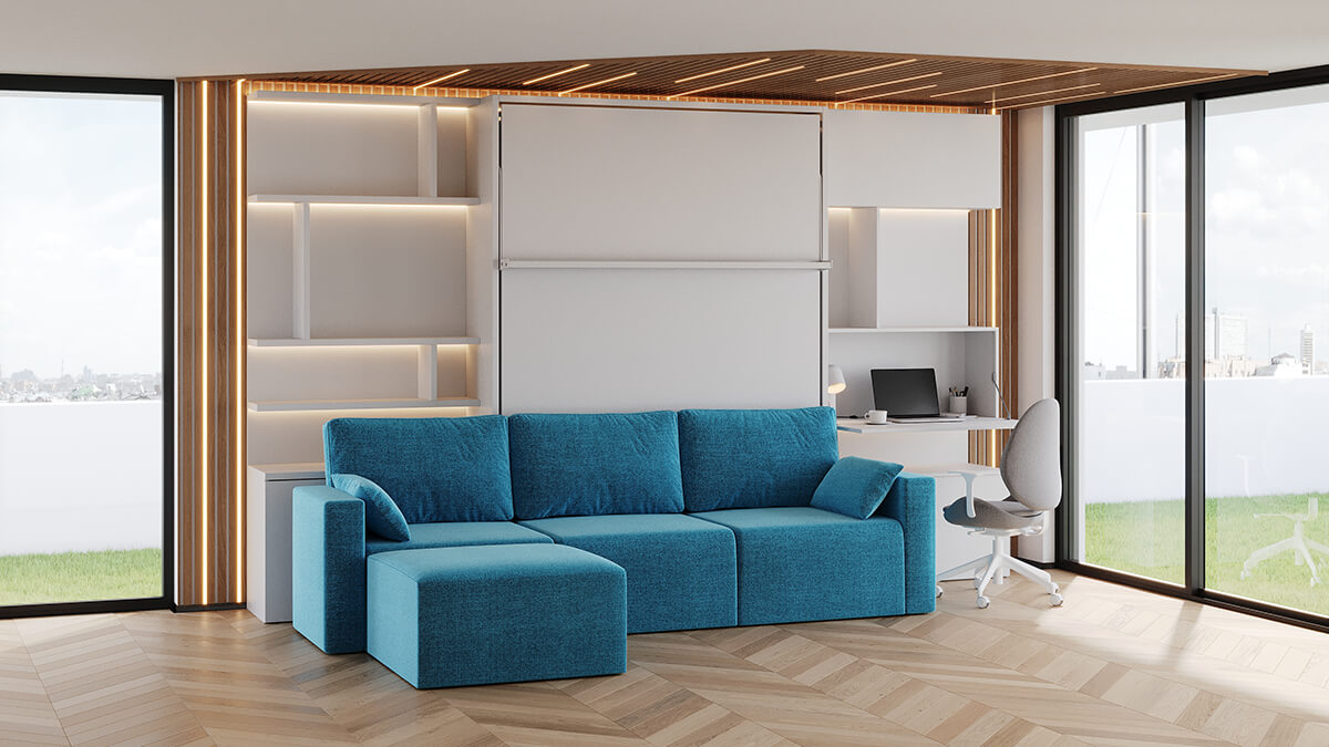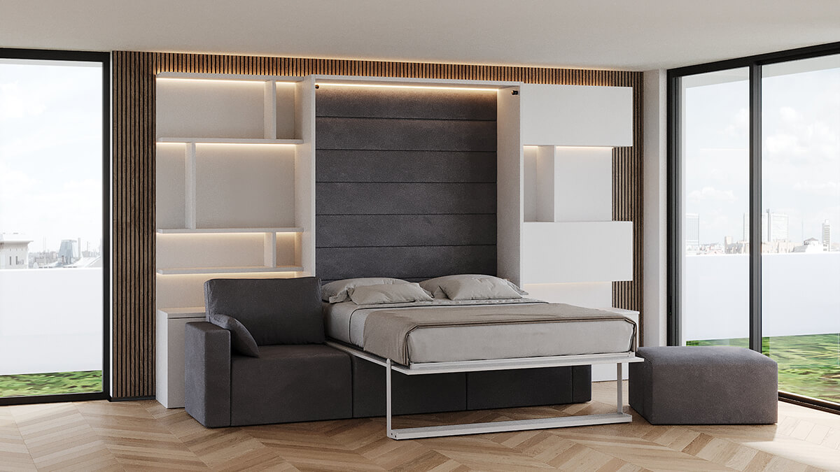 ROYAL Queen Wall Bed with Sectional Sofa, Wardrobe and Bookcases